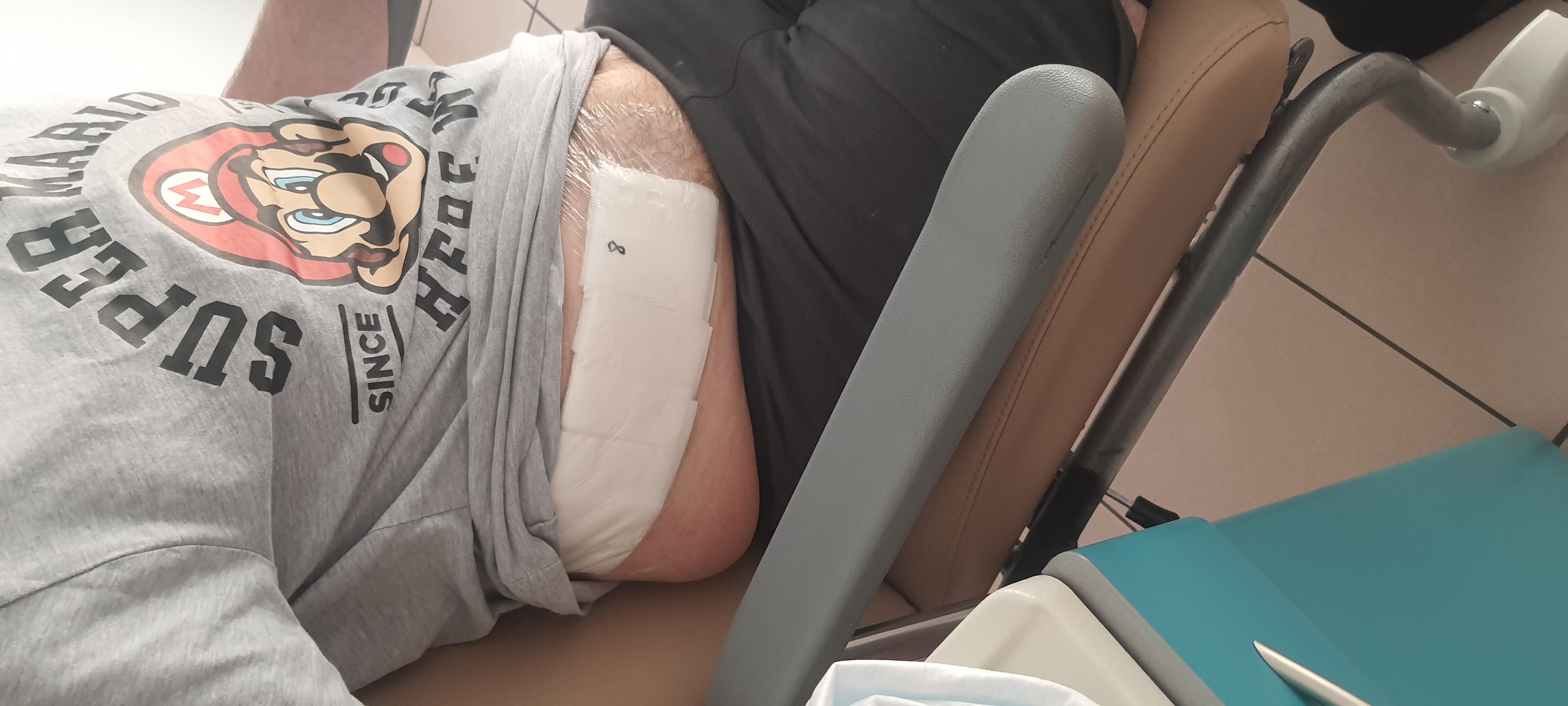 Vers 11h, je suis parti pour me faire enlever mon rein. Forcément j’ai fait un malaise au moment de poser la perfusion… Par contre la pose de la péridurale n’était pas douloureuse du tout, je m’attendais à bien pire.